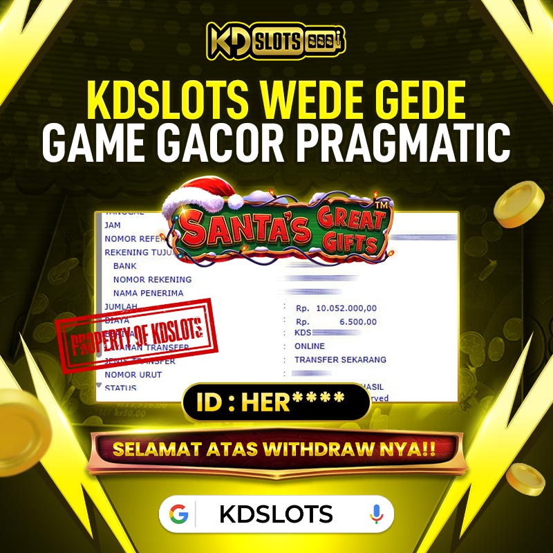 Selamat kepada member KDslots di Game Santa’s Great Gifts (PP) id HER***** Telah berhasil mendapatkan kemenangan sebesar Rp 10.052.000 Setelah mengisi formulir withdraw dengan kurang waktu hanya 3 – 5 menit pihak KDslots sudah melakukan transfer kepada pemilik User ID dan dana sudah dapat di cairkan oleh pemenang. Bukti pembayaran yang kami berikan merupakan bukti pembayaran yang SAH / VALID yang langsung di dapatkan melalui tanda transfer transaksi dari Bank yang dituju