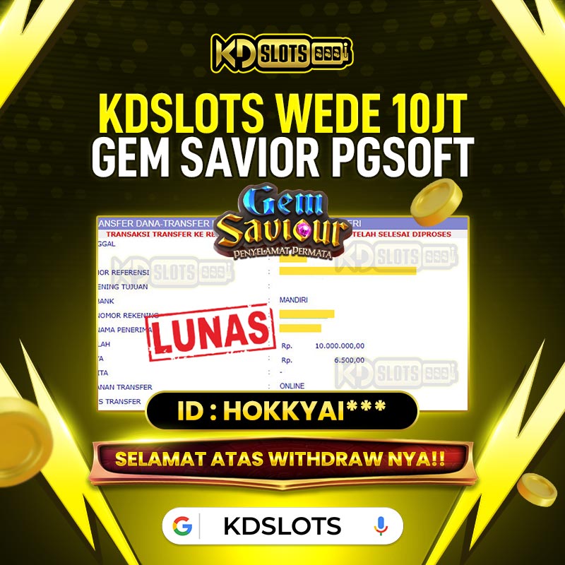 Selamat kepada member KDSLOTS GEM SAVIOR User id HOKIYAI***Telah berhasil mendapatkan kemenangan sebesar Rp 10.000.000 Setelah mengisi formulir withdraw dengan kurung waktu hanya 5 – 10 menit pihak KDslots sudah melakukan transfer kepada pemilik User ID dan dana sudah dapat di cairkan oleh pemenang. Bukti pembayaran yang kami berikan merupakan bukti pembayaran yang SAH / VALID yang langung di dapatkan melaui tanda transfer transaksi dari Bank yang dituju.