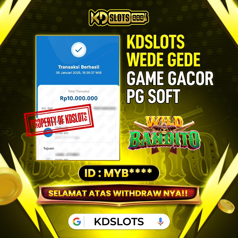 Selamat kepada member KDSLOTS Wild Bandito (PG SOFT) user id MYB**** Telah berhasil mendapatkan kemenangan sebesar Rp 10.000.000 Setelah mengisi formulir withdraw dengan kurung waktu hanya 5 – 10 menit pihak KDslots sudah melakukan transfer kepada pemilik User ID dan dana sudah dapat di cairkan oleh pemenang. Bukti pembayaran yang kami berikan merupakan bukti pembayaran yang SAH / VALID yang langsung di dapatkan melalui tanda transfer transaksi dari Bank yang dituju.