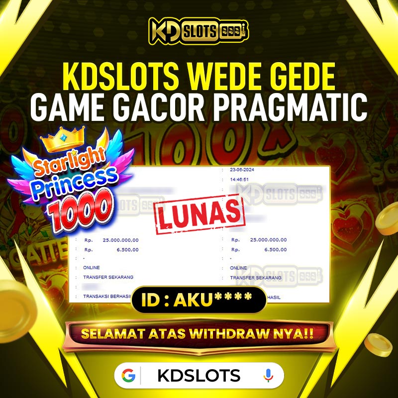 Selamat kepada member KDSLOTS STARLIGHT PRICESS 1000 User id AKU**** Telah berhasil mendapatkan kemenangan sebesar Rp 100.000.000 Setelah mengisi formulir withdraw dengan kurung waktu hanya 5 – 10 menit pihak KDslots sudah melakukan transfer kepada pemilik User ID dan dana sudah dapat di cairkan oleh pemenang. Bukti pembayaran yang kami berikan merupakan bukti pembayaran yang SAH / VALID yang langung di dapatkan melaui tanda transfer transaksi dari Bank yang dituju.