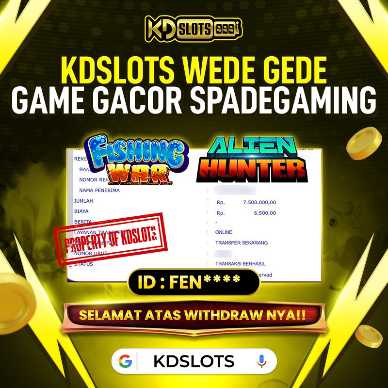 Selamat kepada member KDSLOTS Fishing War (SpadeGaming) dan Alien Hunter (SpadeGaming) user id FEN**** Telah berhasil mendapatkan kemenangan sebesar Rp 57.750.000 Setelah mengisi formulir withdraw dengan kurung waktu hanya 5 – 10 menit pihak KDslots sudah melakukan transfer kepada pemilik User ID dan dana sudah dapat di cairkan oleh pemenang. Bukti pembayaran yang kami berikan merupakan bukti pembayaran yang SAH / VALID yang langung di dapatkan melalui tanda transfer transaksi dari Bank yang dituju.