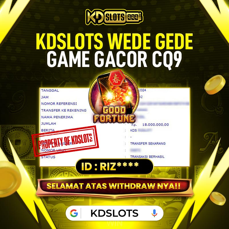 Selamat kepada member KDSLOTS Good Fortune M (CQ9) user id RIZ**** Telah berhasil mendapatkan kemenangan sebesar Rp 18.000.000 Setelah mengisi formulir withdraw dengan kurung waktu hanya 5 – 10 menit pihak KDslots sudah melakukan transfer kepada pemilik User ID dan dana sudah dapat di cairkan oleh pemenang. Bukti pembayaran yang kami berikan merupakan bukti pembayaran yang SAH / VALID yang langung di dapatkan melalui tanda transfer transaksi dari Bank yang dituju.
