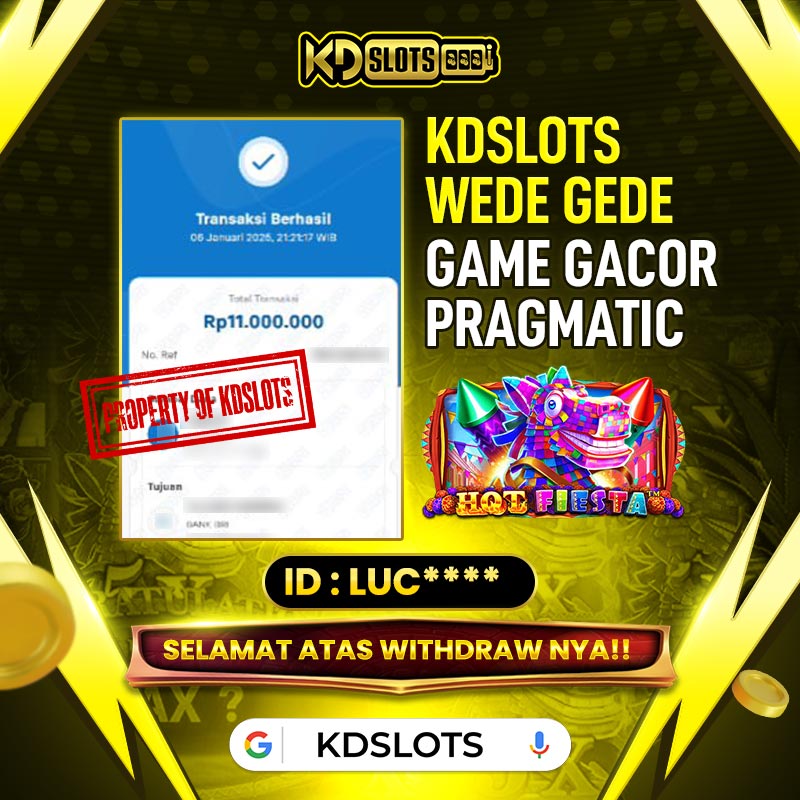 Selamat kepada member KDSLOTS Hot Fiesta (PP) user id LUC**** Telah berhasil mendapatkan kemenangan sebesar Rp 11.000.000 Setelah mengisi formulir withdraw dengan kurung waktu hanya 5 – 10 menit pihak KDslots sudah melakukan transfer kepada pemilik User ID dan dana sudah dapat di cairkan oleh pemenang. Bukti pembayaran yang kami berikan merupakan bukti pembayaran yang SAH / VALID yang langsung di dapatkan melalui tanda transfer transaksi dari Bank yang dituju.
