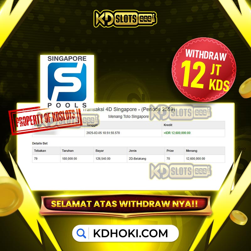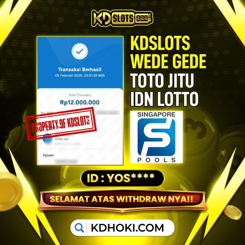 Selamat kepada member KDSLOTS game Toto Singapore (IDN LOTTO) user id YOS**** Telah berhasil mendapatkan kemenangan sebesar Rp 12.000.000 Setelah mengisi formulir withdraw dengan kurung waktu hanya 5 – 10 menit pihak KDslots sudah melakukan transfer kepada pemilik User ID dan dana sudah dapat di cairkan oleh pemenang. Bukti pembayaran yang kami berikan merupakan bukti pembayaran yang SAH / VALID yang langsung di dapatkan melalui tanda transfer transaksi dari Bank yang dituju