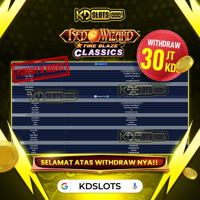 Selamat kepada member KDSLOTS Fire Blaze™: Red Wizard (playtech) user id ARY**** Telah berhasil mendapatkan kemenangan sebesar Rp 30.000.000 Setelah mengisi formulir withdraw dengan kurung waktu hanya 5 – 10 menit pihak KDslots sudah melakukan transfer kepada pemilik User ID dan dana sudah dapat di cairkan oleh pemenang. Bukti pembayaran yang kami berikan merupakan bukti pembayaran yang SAH / VALID yang langung di dapatkan melalui tanda transfer transaksi dari Bank yang dituju.