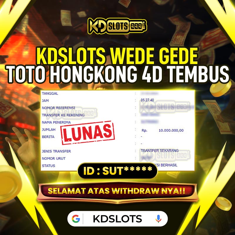 Selamat kepada member KDSLOTS TOTO HONGKONG 4D User id SUT***** Telah berhasil mendapatkan kemenangan sebesar Rp 10.000.000 Setelah mengisi formulir withdraw dengan kurung waktu hanya 5 – 10 menit pihak KDslots sudah melakukan transfer kepada pemilik User ID dan dana sudah dapat di cairkan oleh pemenang. Bukti pembayaran yang kami berikan merupakan bukti pembayaran yang SAH / VALID yang langung di dapatkan melaui tanda transfer transaksi dari Bank yang dituju.