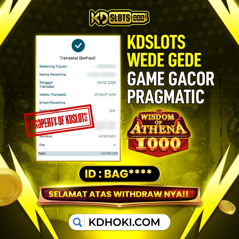 Selamat kepada member KDSLOTS game Wisdom Of Athena 1000 (PP) user id BAG**** Telah berhasil mendapatkan kemenangan sebesar Rp 40.000.000 Setelah mengisi formulir withdraw dengan kurung waktu hanya 5 – 10 menit pihak KDslots sudah melakukan transfer kepada pemilik User ID dan dana sudah dapat di cairkan oleh pemenang. Bukti pembayaran yang kami berikan merupakan bukti pembayaran yang SAH / VALID yang langsung di dapatkan melalui tanda transfer transaksi dari Bank yang dituju