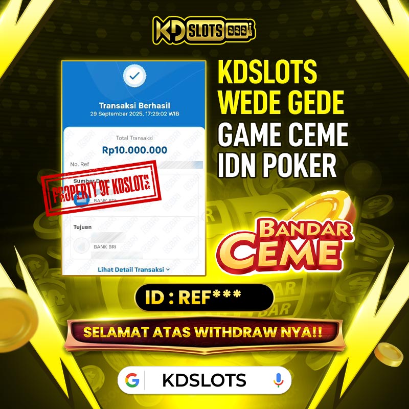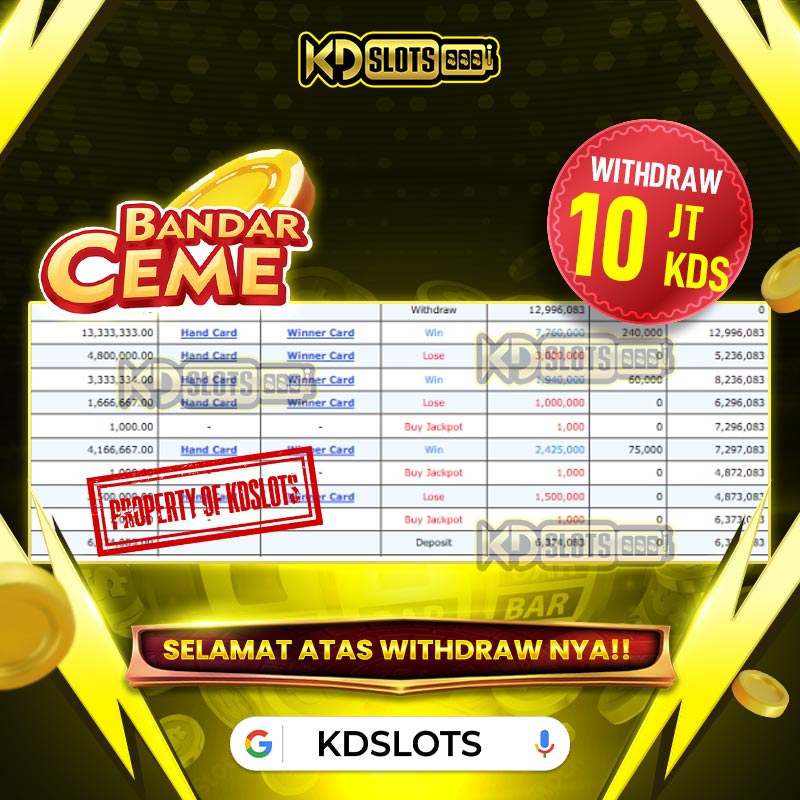 Selamat kepada member KDslots Bandar Ceme (idnpoker) id REF***** Telah berhasil mendapatkan kemenangan sebesar Rp 10.000.000 Setelah mengisi formulir withdraw dengan kurang waktu hanya 3 – 5 menit pihak KDslots sudah melakukan transfer kepada pemilik User ID dan dana sudah dapat di cairkan oleh pemenang. Bukti pembayaran yang kami berikan merupakan bukti pembayaran yang SAH / VALID yang langsung di dapatkan melalui tanda transfer transaksi dari Bank yang dituju
