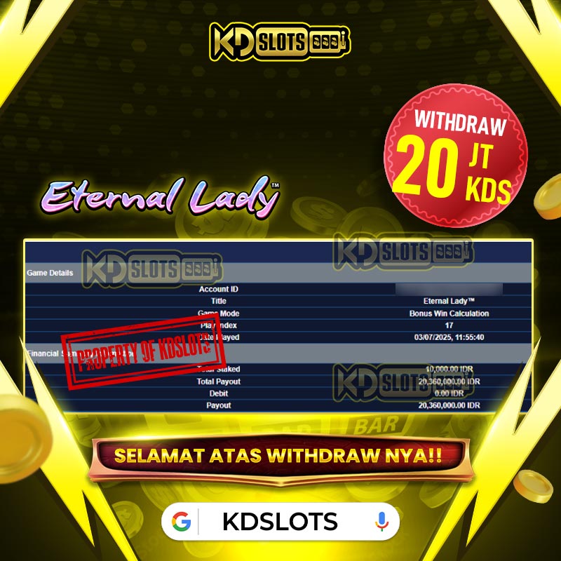 KDSLOTS WITHDRAW ETERNAL LADY PLAYTECH 20 JUTA