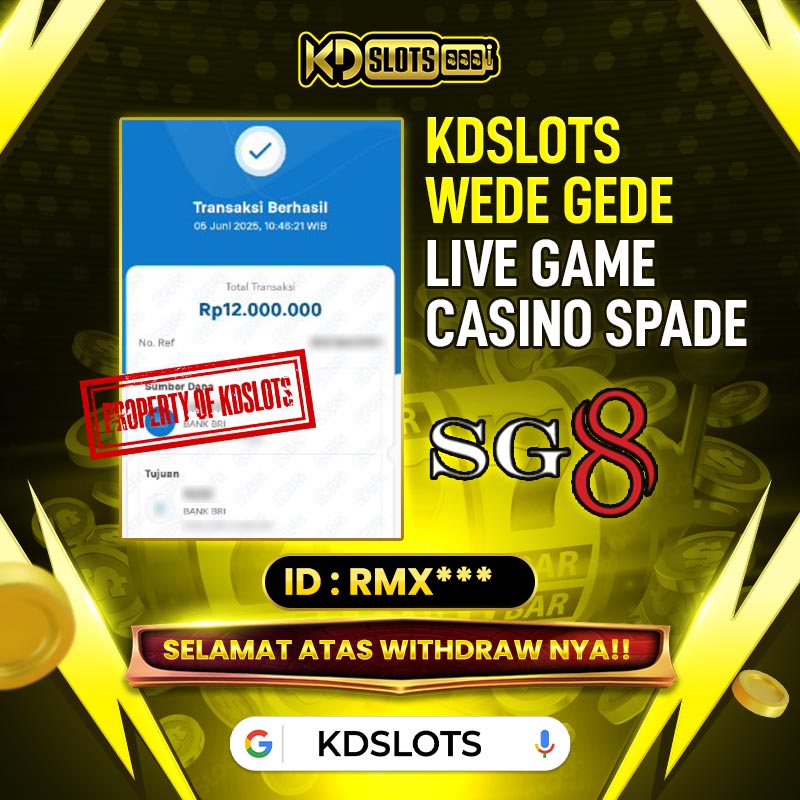 Selamat kepada member KDSLOTS Game casino spade (sg8) user id RMX***** Telah berhasil mendapatkan kemenangan sebesar Rp 12.000.000 Setelah mengisi formulir withdraw dengan kurang waktu hanya 3 – 5 menit pihak KDslots sudah melakukan transfer kepada pemilik User ID dan dana sudah dapat di cairkan oleh pemenang. Bukti pembayaran yang kami berikan merupakan bukti pembayaran yang SAH / VALID yang langsung di dapatkan melalui tanda transfer transaksi dari Bank yang dituju