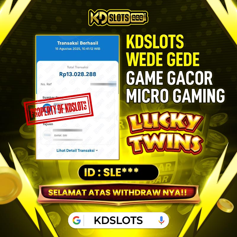 Selamat kepada member KDSLOTS bermain Game Lucky Twins Wilds (MG) id SLE***** Telah berhasil mendapatkan kemenangan sebesar Rp 13.028.288 Setelah mengisi formulir withdraw dengan kurang waktu hanya 3 – 5 menit pihak KDslots sudah melakukan transfer kepada pemilik User ID dan dana sudah dapat di cairkan oleh pemenang. Bukti pembayaran yang kami berikan merupakan bukti pembayaran yang SAH / VALID yang langsung di dapatkan melalui tanda transfer transaksi dari Bank yang dituju