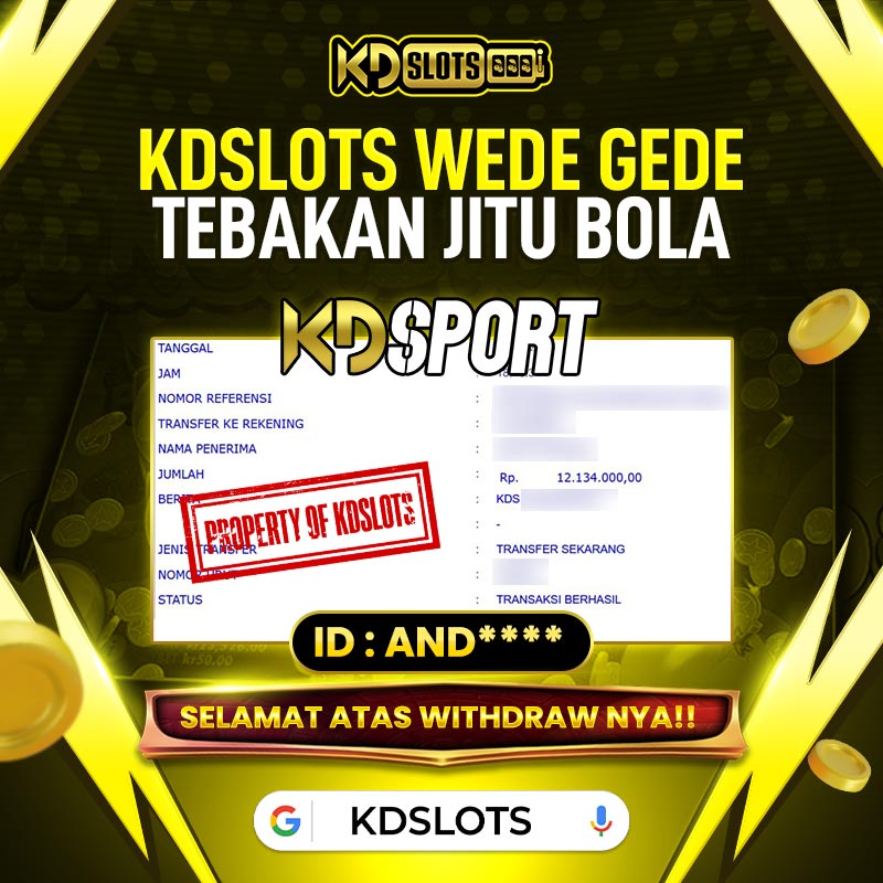 Selamat kepada member KDSLOTS bermain Single Bet (ubosport) id AND***** Telah berhasil mendapatkan kemenangan sebesar Rp 12.134.000 Setelah mengisi formulir withdraw dengan kurang waktu hanya 3 – 5 menit pihak KDslots sudah melakukan transfer kepada pemilik User ID dan dana sudah dapat di cairkan oleh pemenang. Bukti pembayaran yang kami berikan merupakan bukti pembayaran yang SAH / VALID yang langsung di dapatkan melalui tanda transfer transaksi dari Bank yang dituju
