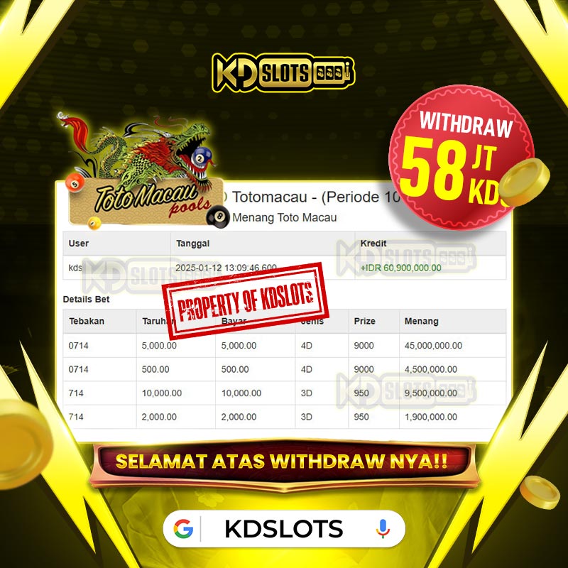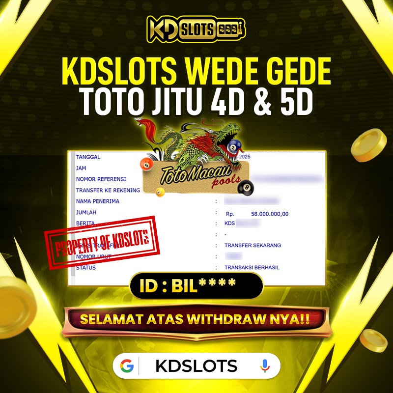 Selamat kepada member KDSLOTS game toto macau user id BIL**** Telah berhasil mendapatkan kemenangan sebesar Rp 58.000.000 Setelah mengisi formulir withdraw dengan kurung waktu hanya 5 – 10 menit pihak KDslots sudah melakukan transfer kepada pemilik User ID dan dana sudah dapat di cairkan oleh pemenang. Bukti pembayaran yang kami berikan merupakan bukti pembayaran yang SAH / VALID yang langsung di dapatkan melalui tanda transfer transaksi dari Bank yang dituju