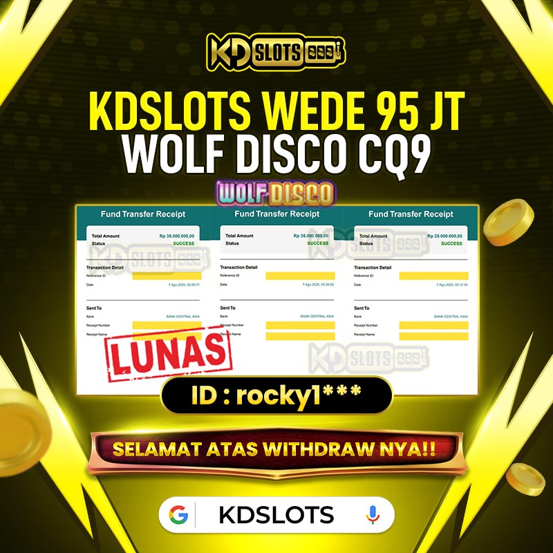 Selamat kepada member KDSLOTS bermain Wolf Disco (CQ9) id ROC***** Telah berhasil mendapatkan kemenangan sebesar Rp 95.000.000 Setelah mengisi formulir withdraw dengan kurang waktu hanya 3 – 5 menit pihak KDslots sudah melakukan transfer kepada pemilik User ID dan dana sudah dapat di cairkan oleh pemenang. Bukti pembayaran yang kami berikan merupakan bukti pembayaran yang SAH / VALID yang langsung di dapatkan melalui tanda transfer transaksi dari Bank yang dituju